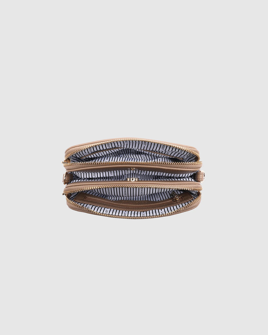 The Louenhide Elle Crossbody Bag is the elevated staple your wardrobe has been waiting for. Designed with a compact rectangular silhouette, this triple compartment crossbody bag keeps your essentials streamlined and organized without compromising style.   To switch up your look with ease, opt for the gold chain strap to elevate your dressier on-the-go moments or swap to the matching faux leather strap for an casual feel.  Adorned with light gold hardware, this multi-zipper crossbody bag is designed to carry you from daylight errands to your evening plans – effortlessly.