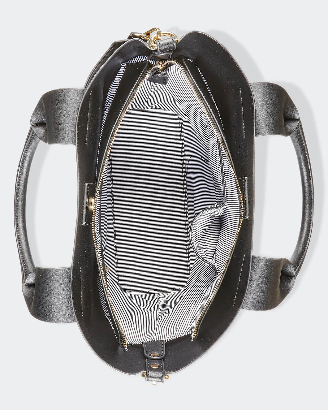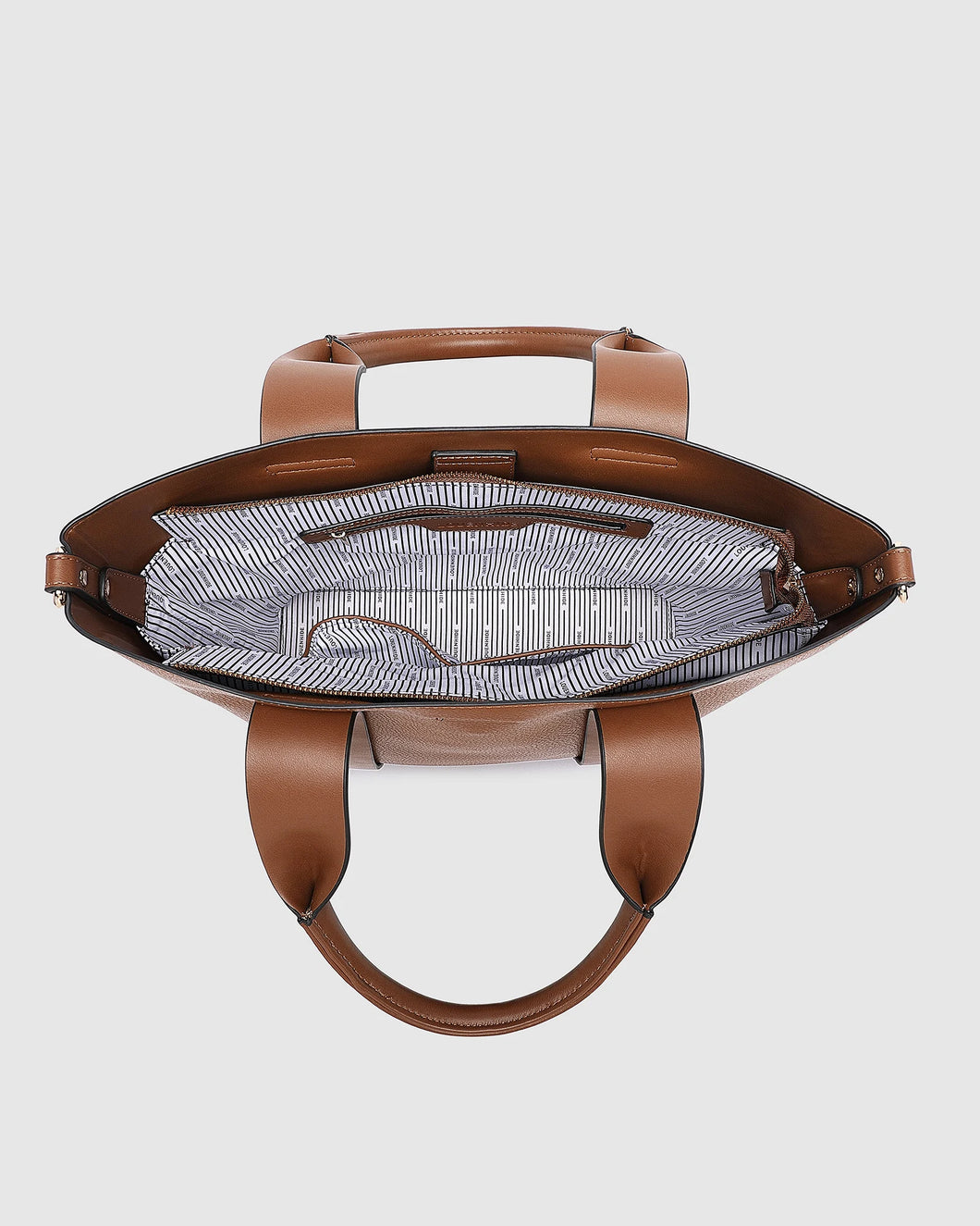 The Louenhide Windsor Bag is the perfect work tote bag for the woman on the go. Complete with feature oversized strap detailing and light gold hardware. Carry effortlessly by the top handles or wear comfortably on your shoulder with its wide detachable strap. Ready for work or play, the Windsor will fit all of your essentials and more in its spacious interior, multiple slip and zip compartments, and wide opening for easy access.